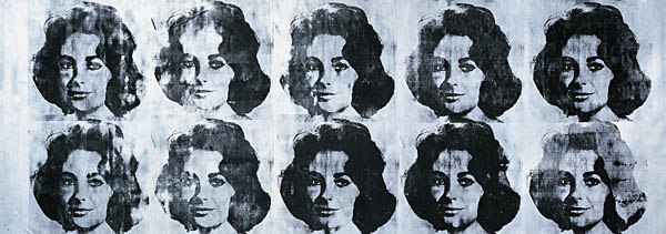 Nel 1963 Liz Taylor ha trent’anni, e da ragazzina protagonista di Torna a casa Lessie! è diventata la formosa interprete perfetta per il Cleopatra di Joseph L. Mankiewicz. L’apice della sua carriera. Tutti la conoscono, gli uomini la sognano, le casalinghe di Voghera la invidiano, la sua fama è paragonabile a quella di un pacchetto di pasta Barilla, o se volete, visto che siamo in America, a una lattina di zuppa Campbell. Insomma, il suo bellissimo viso è divenuto un emblema di popolarità e successo: un’icona contemporanea. Facciamole un ritratto, deve essersi detto Andy Warhol. Anzi, visto che la sua figura è talmente amata e (ri)conosciuta, facciamole un ritratto multiplo, un ritratto decuplo. Il suo volto è estrapolato da una fotografia e ripetuto dieci volte mediante il processo meccanico e anonimo della serigrafia. Paganini non ripete, Andy Warhol sì.