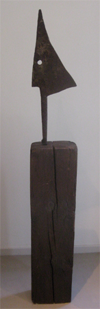 Ehm… Lo so, è poco chiaro. Probabilmente sono io incapace di rendere in italiano il senso e il ritmo di questa poetica dichiarazione d’intenti dell’artista. Mea culpa, vi prego di non volermene : il problema è che il significato del componimento mi sfugge già nella sua versione originale. Ma passiamo oltre. All’ingresso della mostra c’era un uomo sui settant’anni evidentemente affaticato dal caldo. Un altro folle, ho pensato io, che a una bibita ghiacciata a bordo piscina preferisce la profonda commozione intellettuale dell’arte moderna. Beh, si dava il caso che questo “folle” fosse Jean-Paul Meiser stesso, e la cosa mi ha sorpreso in modo talmente positivo (vi immaginate se a una mostra dedicata ad Anish Kapoor o Fernando Botero ci fossero gli artisti in persona ad accogliervi?) che mi sono subito messo a porgli le mie solite domande un po’ impertinenti : Sig. Meiser, le è mai capitato di mettere un piede in un secchio di vernice ? Preferisce dipingere a stomaco vuoto o a stomaco pieno ? L’età del primo bacio ? Sciocchezze a parte, Jean-Paul Meiser si è mostrato molto disponibile a raccontarmi il suo percorso artistico e a tentare di spiegarmi la genesi di alcune delle sue opere. Come il magistrato Gianrico Carofiglio che si è scoperto scrittore superata la soglia dei quaranta, anche Jean-Paul Meiser ha intrapreso la carriera di pittore e scultore a quarantacinque anni. Prima era insegnante in un istituto tecnico commerciale. Ma come ha percepito il richiamo dell’arte ? Meiser mi spiega che per lui l’artista è qualcuno che è capace di scorgere ciò che gli altri non vedono, e di rivelare in maniera inattesa alcuni aspetti banali della realtà. Questo mi pare rappresentato benissimo dalla sua scultura intitolata Profilo d’Achille : dove chiunque vede un semplice ceppo di legno e un’ascia appuntita di metallo, l’artista vede e ricrea in forma stilizzata il guerriero più famoso della mitologia greca. Uno a zero per Meiser !