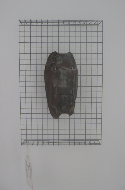Al piano superiore della mostra erano presenti delle opere più “tradizionali”, ovvero delle opere più accessibili alla mia ingenua comprensione. A far subito breccia nel mio cuore è stata la scultura Notre dame de Paris, non tanto per la sua qualità artistica quanto per avermi ricordato le incredibili serate primaverili a Pigalle con i miei amici Georges ed Henry. Tre a zero per Meiser ! L’artista mi dice di aver intitolato quest’opera come la famosa cattedrale parigina a chiaro scopo ironico, e dando un’occhiata anche ad altre opere mi rendo conto che effettivamente Jean-Paul Meiser è un gran burlone. Il suo umorismo acido non ha paura di prendere di mira nessuno. Nemmeno i suoi colleghi più illustri. Il povero Andy Warhol e la sua famosa teoria secondo cui nel futuro ognuno sarà celebre per 15 minuti, ispirano all’artista francese una scultura raffigurante una orripilante faccia metallica dall’espressione chiaramente disgustata su una griglia zincata. Io non ho ancora avuto il mio quarto d’ora di celebrità, s’indigna Meiser. Meglio rimanere nell’anonimato piuttosto che essere conosciuto da tutti come lo scemo del villaggio, dico io. Ma questa è solo la mia opinione, e l’artista non sono io. Quattro a zero per Meiser, allora.