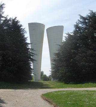 chateau-eau-valenceMi trovavo dal giornalaio, e tra una rivista e l’altra il mio occhio è caduto su una copertina con una foto di un’opera architettonica dall’aria familiare. Il Colosseo ? Le Piramidi ? La Torre Eiffel ? No, nulla di famoso. Mi correggo : nulla che fino a quel momento pensavo fosse famoso. Due torri di cemento immerse nel verde di un parco cittadino. Queste costruzioni mi ricordano qualcosa, penso, qualcosa che mi capita di vedere spesso. Ma sì ! Ci sono : quelle due torri contorte che si vedono dalla tangenziale che imbocco quotidianamente per andare in ufficio. Per chi non lo sapesse, io vivo e lavoro a Valence, città francese a 100 km da Lione. Prendo la rivista in questione, la sfoglio, e mi rendo conto che le due torri non sono degli edifici qualunque. Sono una vera opera d’arte contemporanea. Ma dai ! A differenza però dell’Ago e filo milanese, le due torri valentine (gli abitanti di Valence si chiamano valentini) oltre all’estetica hanno anche una finalità pratica. Servono a qualcosa. I francesi le definiscono Château d’eau, letteralmente “Castello d’acqua”, in italiano possiamo tradurle più prosaicamente come “Cisterna”. Insomma, sono dei grandi contenitori d’acqua.