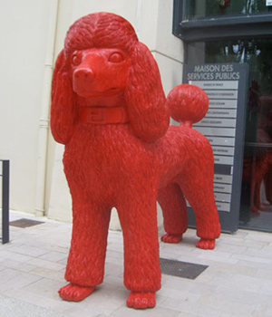 I tre cloni di bulldog che vedete sopra, ad esempio, stanno orgogliosi e impettiti nella piazza del municipio di Montélimar, in Francia, mentre il gattone qui accanto si aggira nei dintorni del Museo di Arte Contemporanea della stessa città. Non notate tuttavia qualcosa di strano in questi animali ? Non mi riferisco ai loro colori sgargianti, né al fatto di essere sovradimensionati. Parlo di un particolare curioso, anomalo, forse anche ironico. Non l’avete ancora scorto ? Scusate, non vi sembra un po’ bizzarro che dei cani calzino scarpe da tennis, o che un gatto vada a spasso con una borraccia a tracolla ? Precauzioni. Il loro creatore sostiene che si tratta di precauzioni. Il giorno in cui la Terra sarà sconvolta da catastrofi naturali come allagamenti, terremoti o carestie provocate dall’incoscienza umana, questi poveri cloni saranno equipaggiati per affrontare le avversità : contro i piedi all’umido o la gola secca, non esistono rimedi migliori di scarpe comode o abbondanti riserve d’acqua. E io che mi stavo già inventando improbabili spiegazioni metafisiche… Nell’arte contemporanea vige pur sempre la regola del buon senso, la stessa che speriamo continuerà a garantirci tre pasti al giorno per almeno un secolo a questa parte.