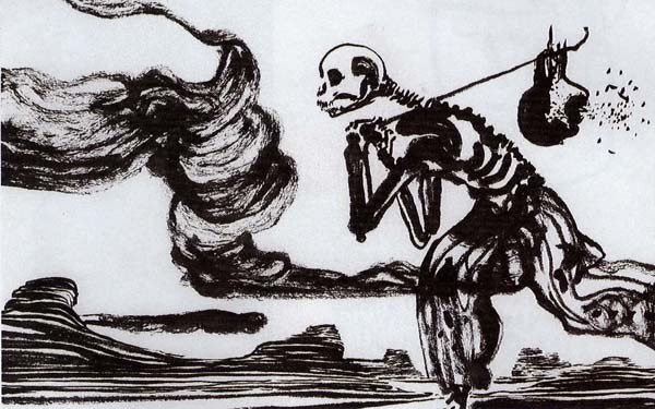 Il bianco e il nero, le figure macabre, il paesaggio desolato, l’atmosfera da incubo… il disegno di Mattotti fa accapponare la pelle. In retorica si chiama allegoria, ovvero l’espressione di un’idea attraverso la rappresentazione di un’immagine o la narrazione di una storia che celano significati secondi, significati indiretti. Una maniera di comunicare che risale ai versi di Dante Alighieri o alle acqueforti di Francisco Goya, quando mica era possibile dire apertamente tutto quel cavolo che ci passava per la testa. Bei tempi, questi: basta aprire un blog, o tutt’al più stampare un giornale, per rendersi conto che… No, la pianto qui. Altrimenti finisce che pure io dico la mia.