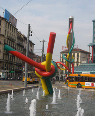 ago-filo-nodoMettete da parte stilisti, costumisti, shampisti e pubblicisti : l’Ago, filo e nodo è merito del guizzo di un artista lontano dalla classica movida meneghina. Uno svedese naturalizzato americano. Claes Oldenburg, nato a Stoccolma nel 1929 e ora residente negli Stati Uniti. Arte pop, arte di massa, arte da piazza.