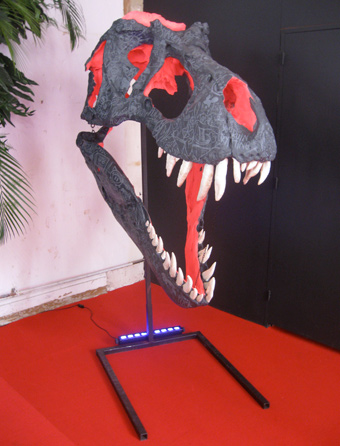 La selezione dei quaranta artisti presenti, francesi e internazionali, la si deve più alle relazioni di amicizia degli organizzatori con gli artisti stessi che non a criteri estetici o tematici : già dal titolo, infatti, ZOO si presenta quale il tentativo di riunire – se non propriamente addomesticare – esperienze e pratiche creative variegate, senza dover per forza trovare una linea comune tra le opere. Il primo lavoro esposto, quello che accoglie i visitatori all’ingresso della grande area al pianterreno, è un teschio gigante di dinosauro realizzato con un materiale che potrebbe essere il polistirolo o la cartapesta : ricoperto esternamente da disegnini e ghirigori e rischiarato alla base da una luce a led, pare la mascotte della mostra, il faccione sogghignante all’entrata di un improbabile parco di divertimenti.