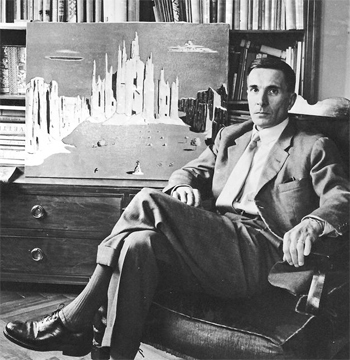 La critica d’arte ufficiale, d’altra parte, quasi per dispetto, stimava di poco conto i lavori di Buzzati pittore, anzi, appena li prendeva in considerazione : come potevano, i suoi dipinti e disegni dall’aria così candida, dal gusto così naïf, trovare posto accanto alle tele tagliate, le composizioni di rottami o gli austeri monocromi che allora invadevano gallerie e musei ? Persino il suo quadro più celebre fu realizzato in occasione di un concorso d’arte rivolto non a pittori professionisti bensì a letterati con il pallino dei colori e pennelli. A indire questo concorso, finalizzato a radunare un numero consistente di opere da esporre in una mostra, fu la galleria milanese Apollinaire, che nel 1957 propose agli scrittori con l’hobby della pittura di produrre un dipinto ispirato alla Piazza del Duomo di Milano. Soltanto tre animi intrepidi raccolsero la sfida lanciata dalla galleria, Eugenio Montale, Orio Vergani e appunto Dino Buzzati, di conseguenza il progetto della mostra alla fine non si concretizzò.