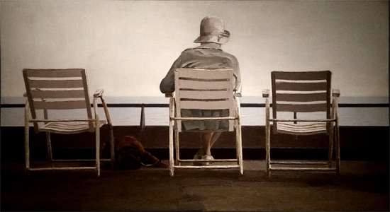 Il quadro s’intitolava Giornata comune ed era opera di Vanko Urumov, un nome che sul momento non mi diceva nulla ma più tardi scoprivo appartenere a uno dei più importanti artisti bulgari contemporanei. A osservarlo con superficialità, si trattava di una semplice veduta di un lungomare urbano, un’immagine che in un passato non troppo remoto sarebbe facilmente stata riprodotta sulle cartoline turistiche distribuite nelle edicole, o su quei poster di pessimo gusto appesi nelle agenzie di viaggio ; il titolo dell’opera, poi, pareva volesse insistere sulla banalità del soggetto raffigurato, soffocare sul nascere qualsiasi ambiguità o interpretazione fantasiosa : ed ecco a voi una Giornata comune di una persona comune in una città comune. Una signora anziana che contempla il mare da seduta, accanto a un cane appisolato, non è d’altronde un esempio di stravaganza.